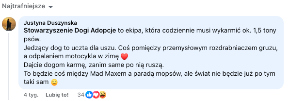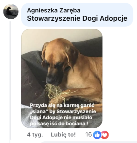 Dogi Adopcje - jesteśmy bardzo ciekawi, jak brzmią odgłosy jedzenia dogów. Czekamy na nagranie 😎 Gratulujemy też tak kreatywnych obserwujących - nie mogliśmy się zdecydować, który komentarz wybrać!