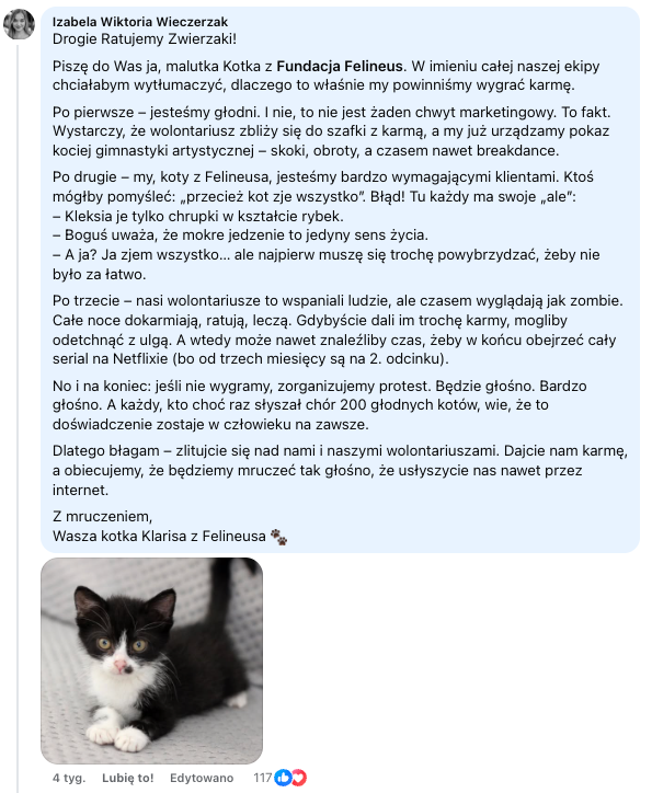Fundacja Felineus - nie możemy zaryzykować protestu głodnych kotów!