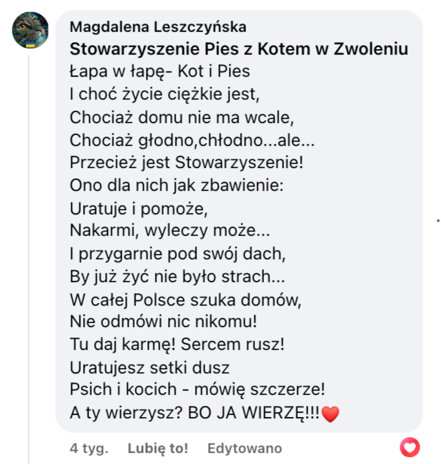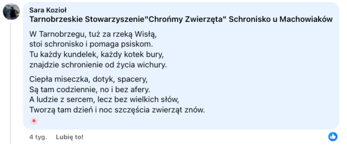 Tarnobrzeskie Schronisko u Machowiaków - w wielu komentarzach podkreślaliście, że Schronisko u Machowiaków robi ogrom dobra dla zwierząt przy bardzo skromnych możliwościach i dlatego zasługuje na wsparcie. Poza tym nie odmówimy dobrej poezji ❤️
