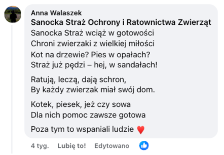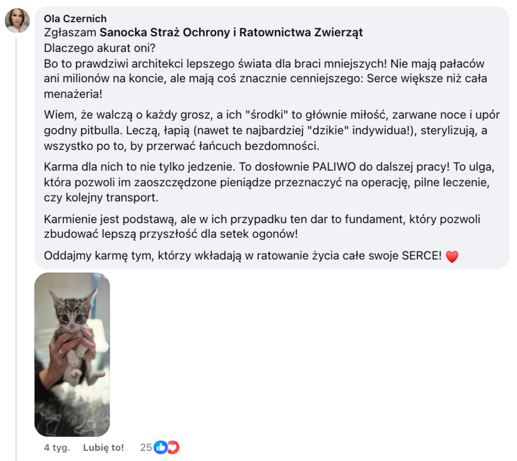 Sanocka Straż Ochrony i Ratownictwa Zwierząt - jeśli ta karma ma dać Wam ulgę i ułatwić dalsze działania dla zwierząt - idziemy w to!