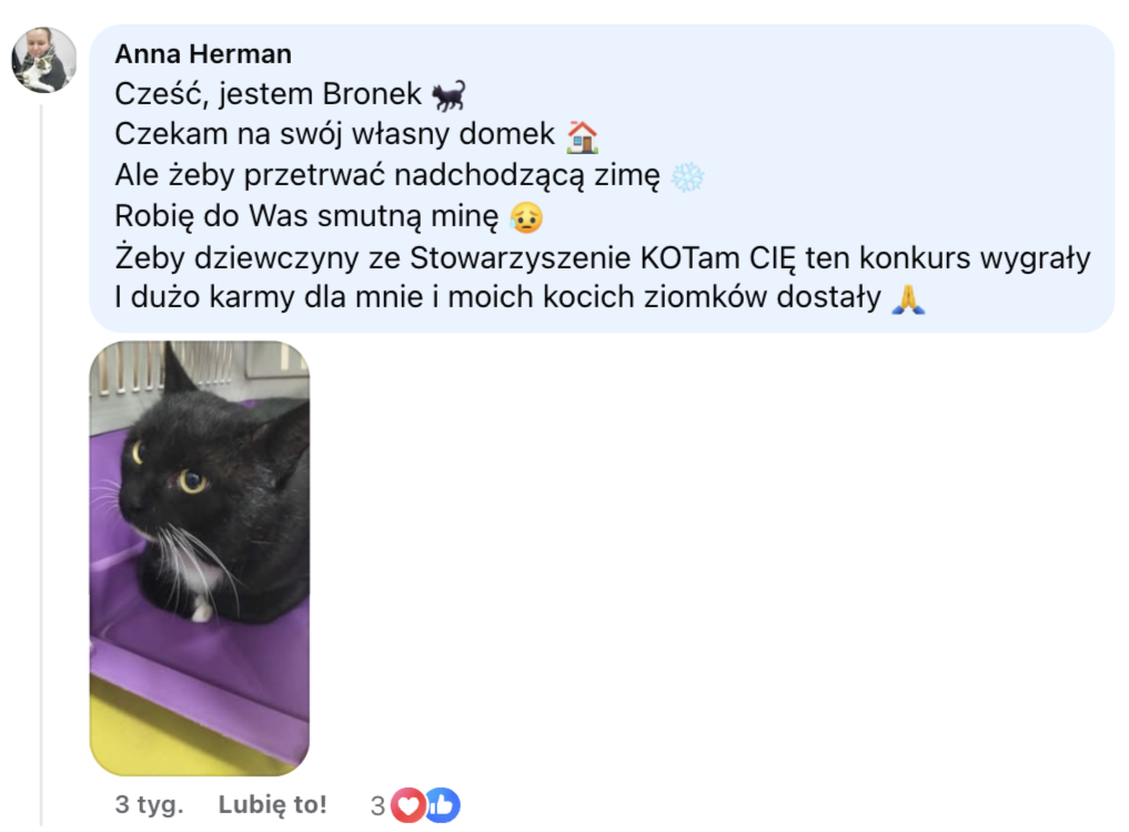 Stowarzyszenie KOTam Cię - Bronek, Twoje ziomki będą musiały Ci ogromnie podziękować, bo wysyłamy do Was karmę! Wierzymy też, że uda się przekonać starego do adopcji kolejnych kotów 💪